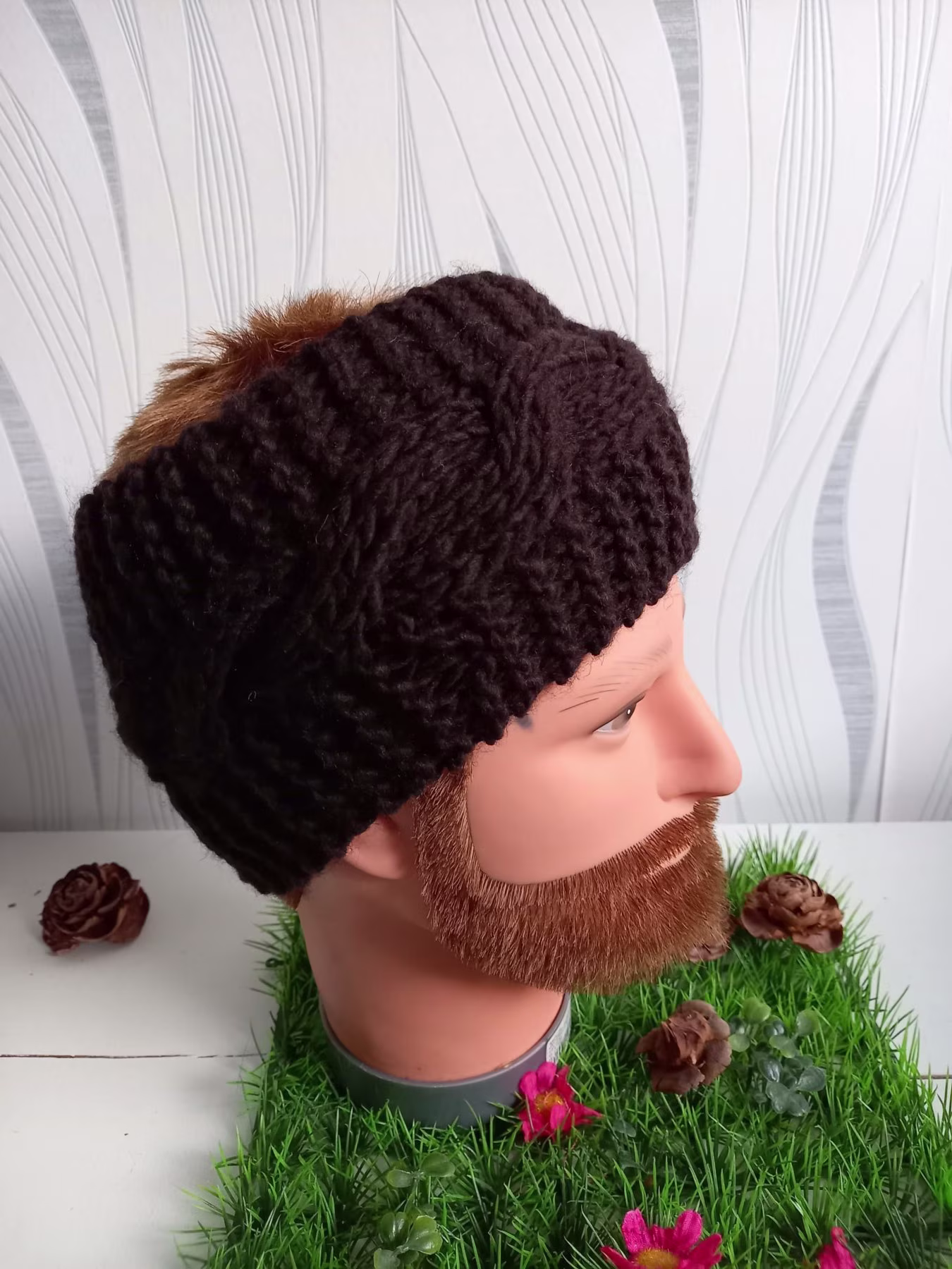 Bandeau femme en laine rose tricoté main , croisé sur le dessus