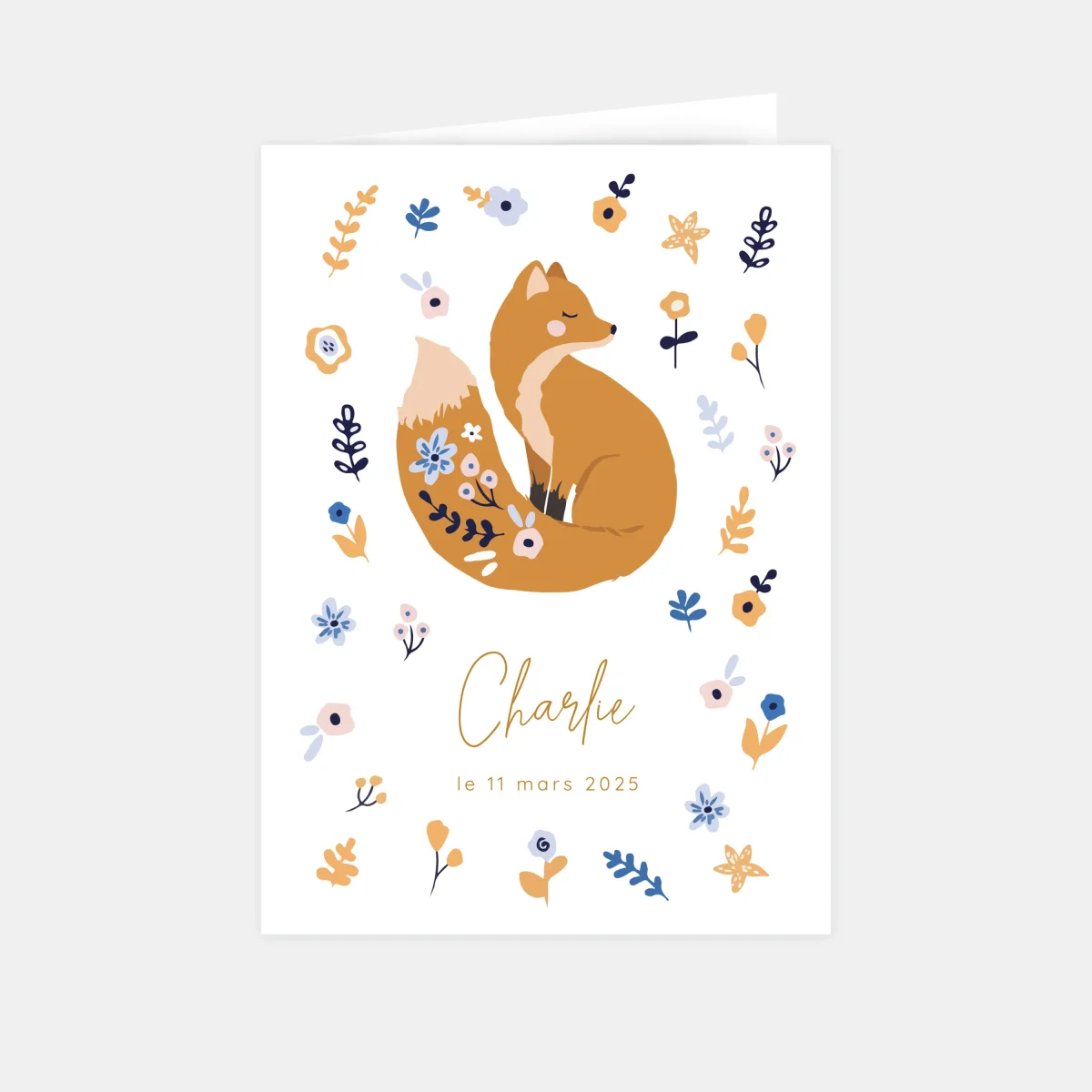 Faire-part de naissance renard fleuri