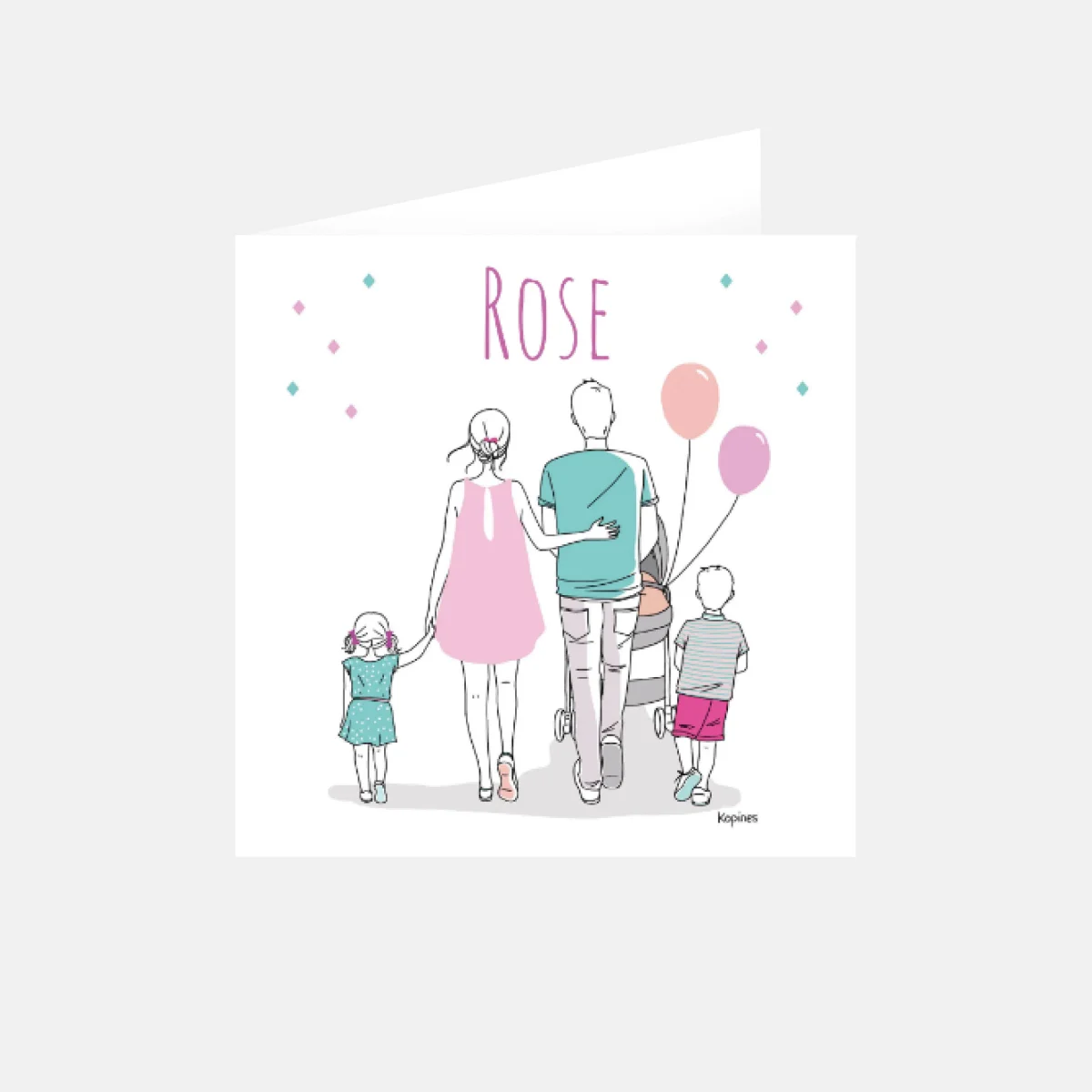 Faire-part naissance ma famille rose 1 frère et 1 soeur by Kopines