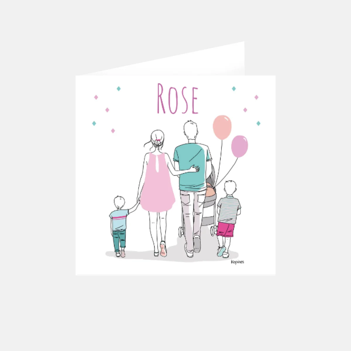 Faire-part naissance ma famille rose 2 frères by Kopines