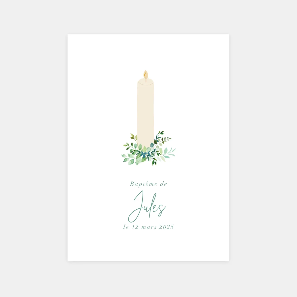 Faire-part de baptême cierge végétal