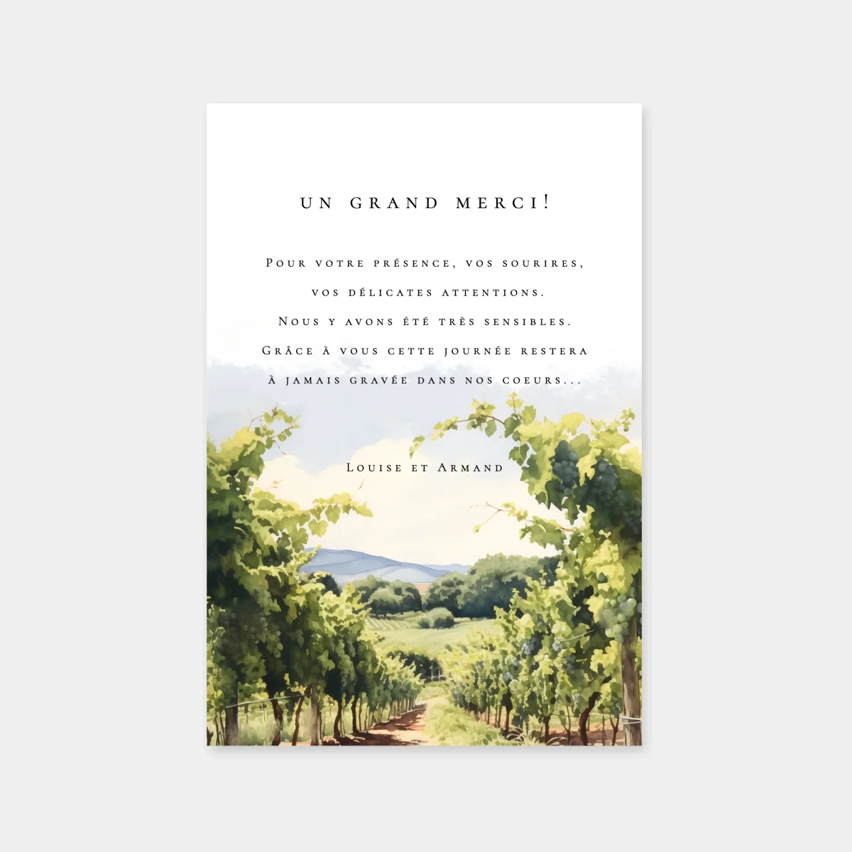 Carton remerciement mariage vignes aquarelle