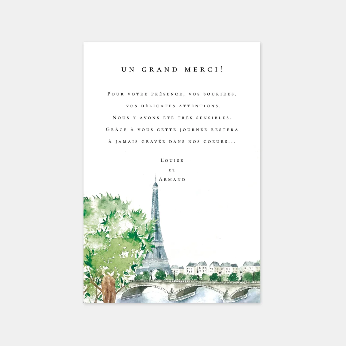 Carton remerciement mariage paris aquarelle