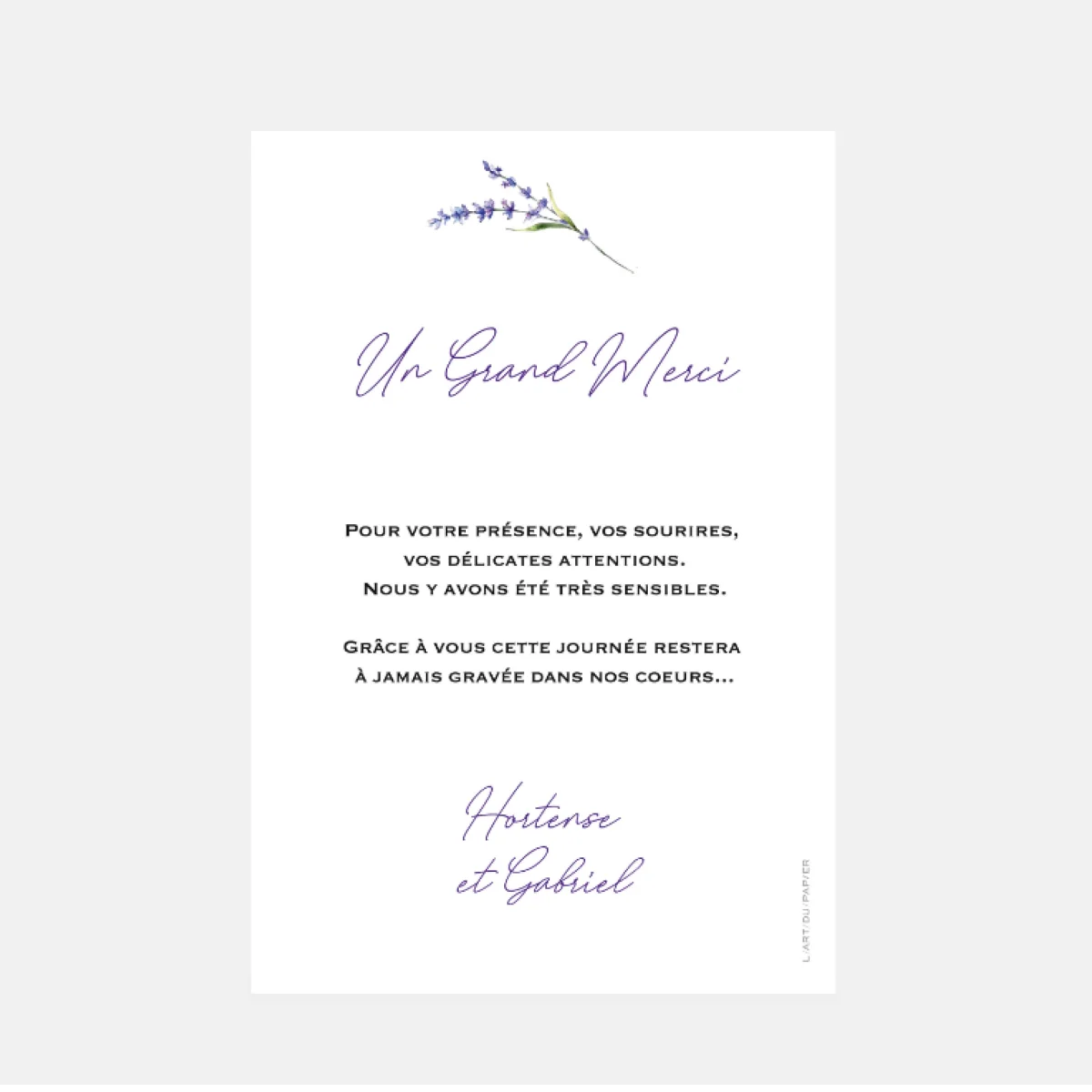 Carton remerciement mariage transparence lavandes