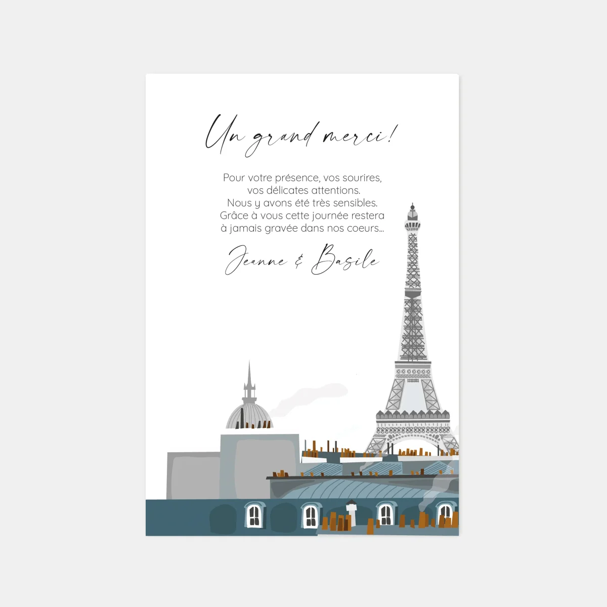 Carton remerciement mariage toit de Paris